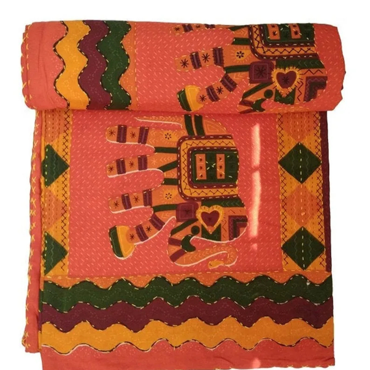 Handmade Kantha Quilt Bedcover Throw Indian Solid Pattern Elephant/Camel Printed Patchwork Cotton Blanket Modern Style Gudari
